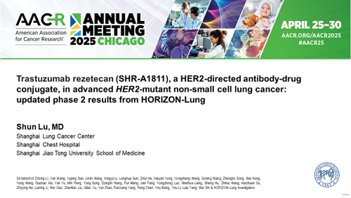 2025 AACR口头报告|金年会创新药瑞康曲妥珠单抗治疗晚期HER2突变非小细胞肺癌研究结果披露
